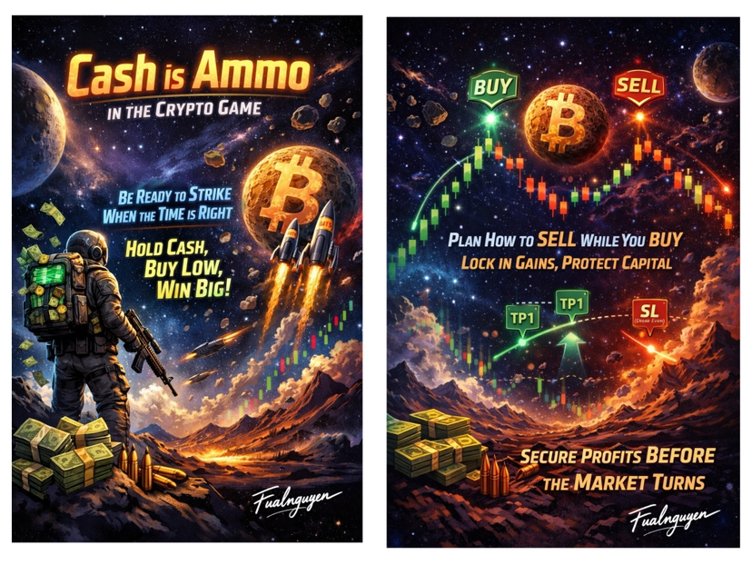 Thứ hai, hãy tích sản tiền mặt song song với kế hoạch hành động. Thị trường crypto luôn tạo ra cảm giác rằng bạn phải liên tục làm gì đó: mua, bán, xoay vòng danh mục, săn cơ hội mới. Nhưng đôi khi quyết định tốt nhất lại là giữ tiền và chờ đợi. Đừng để áp lực “phải hành động” chi phối ngược lại kế hoạch của bạn. Khi cơ hội xuất hiện, khi giá giảm đến không tưởng, ai còn đầy đủ vũ khí đạn dược, người đó có lợi thế nhất. Giống như giá BTC và tất cả altcoin hiện tại đều là giá siêu tốt nhưng chỉ ai còn tiền thì mới DCA tiếp được lúc này.