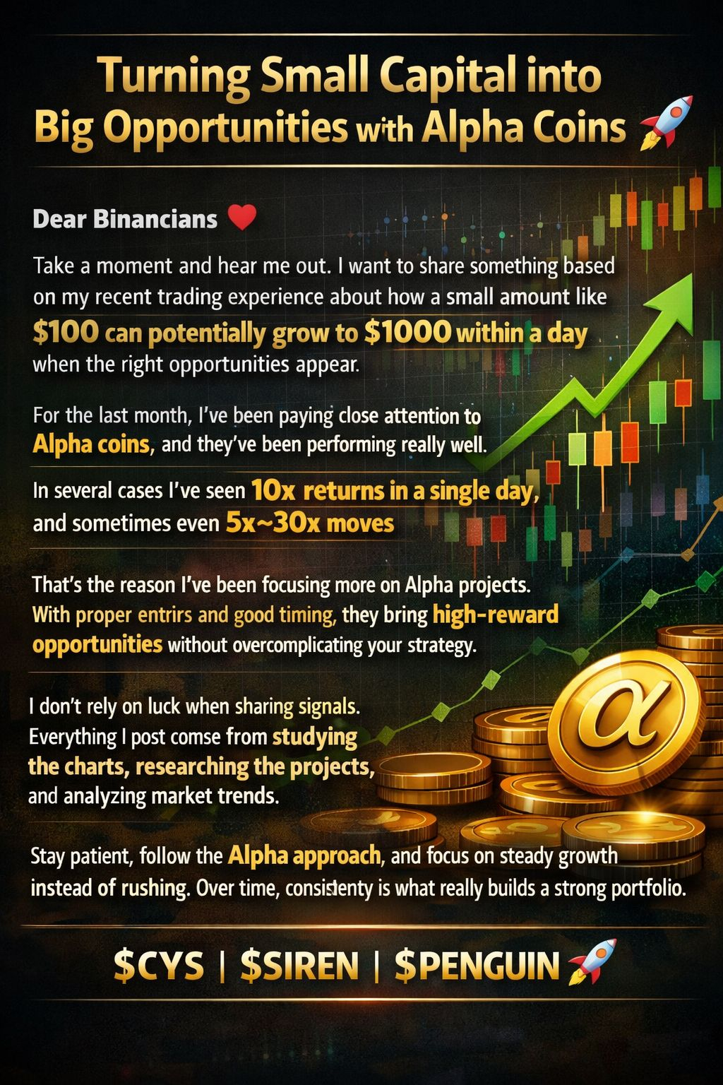 $CYS | $SIREN | $PENGU 🚀 #Write2Earn #Binance