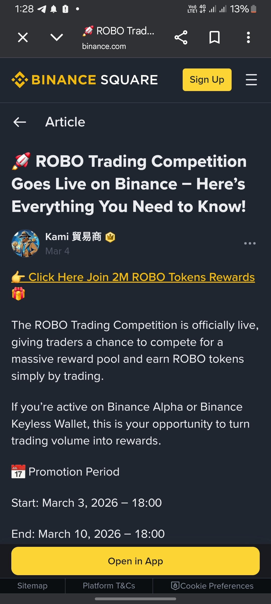 Binance Wallet is excited to launch the Fabric Protocol Trading Competition on Binance Alpha! During the Promotion Periods, trade Fabric Protocol (ROBO) in your Binance Wallet (Keyless) or via Binance Alpha to receive exclusive token rewards. Any user who is eligible to trade Binance Alpha tokens is eligible to participate in this trading competition.