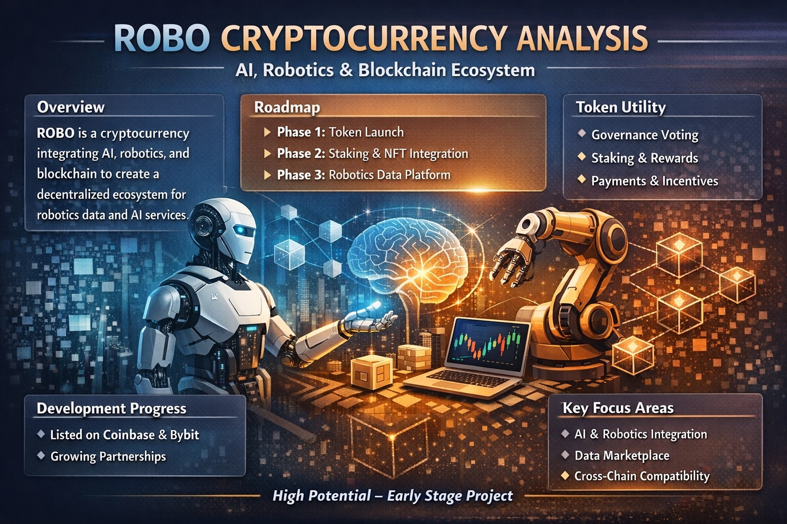Ogólnie rzecz biorąc, ROBO reprezentuje projekt kryptograficzny na wczesnym etapie, z ambitną wizją technologiczną. Celując w przecięcie AI, robotyki i blockchainu, próbuje zająć pozycję w jednym z najszybciej rozwijających się sektorów cyfrowej gospodarki. Jednak jak wiele wschodzących kryptowalut, jego długoterminowy sukces będzie zależał od realizacji technologicznej, adopcji i konkurencji na rynku.