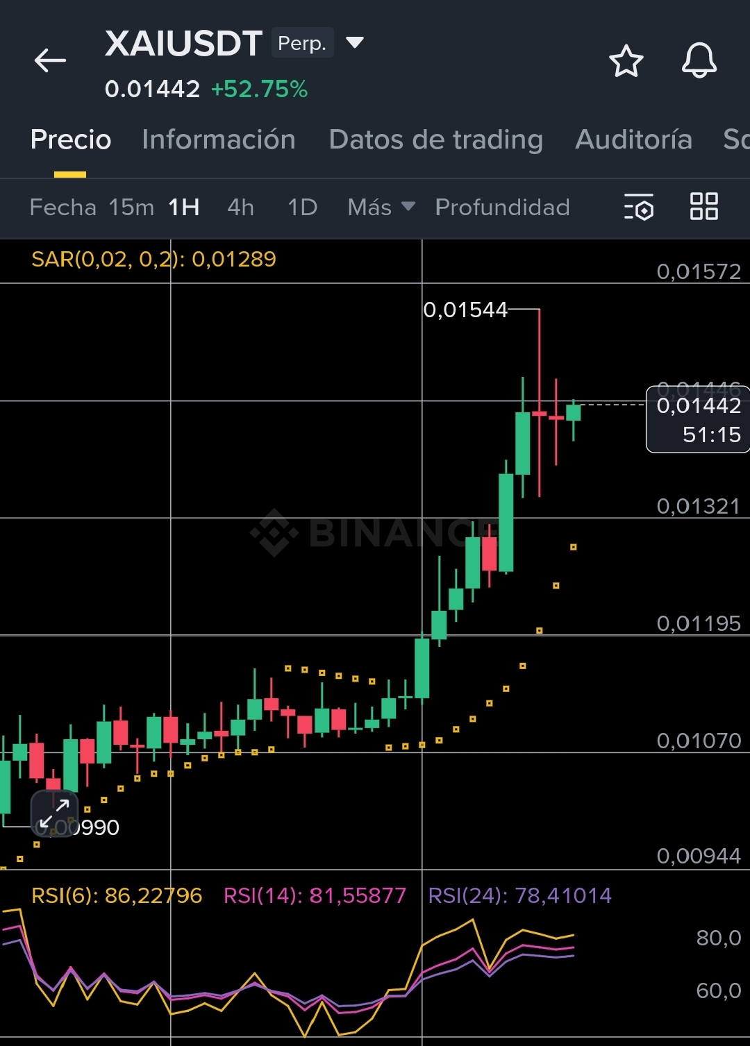 Entrada: $0.01180 (esperar un pequeño retroceso tras el pico actual).