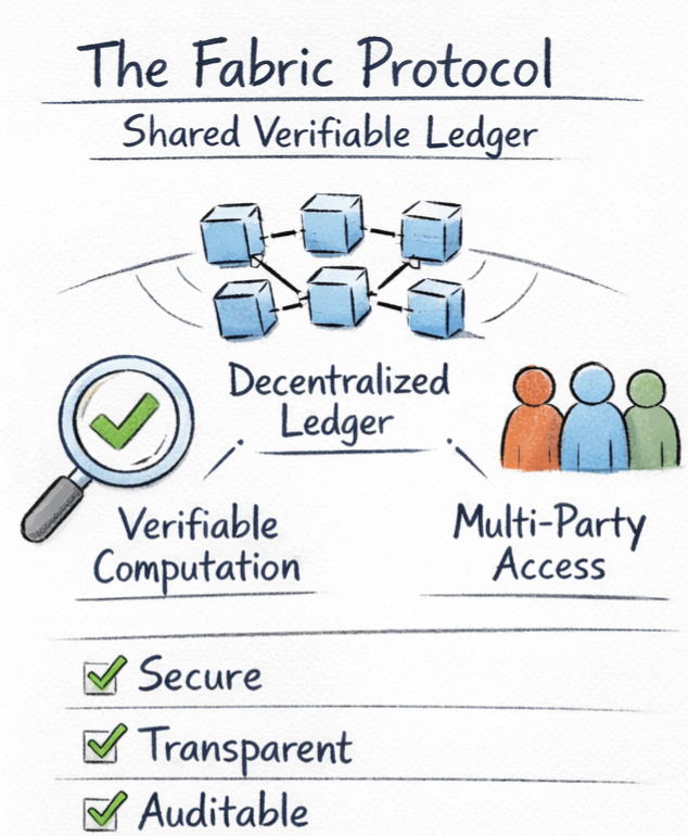 Fabric proposes using a public ledger to coordinate robotic actions. A ledger, in simple terms, is a shared record of events. In blockchain based systems that record is distributed across many computers and linked together through timestamps and cryptographic proofs, which makes past entries difficult to modify without everyone noticing.