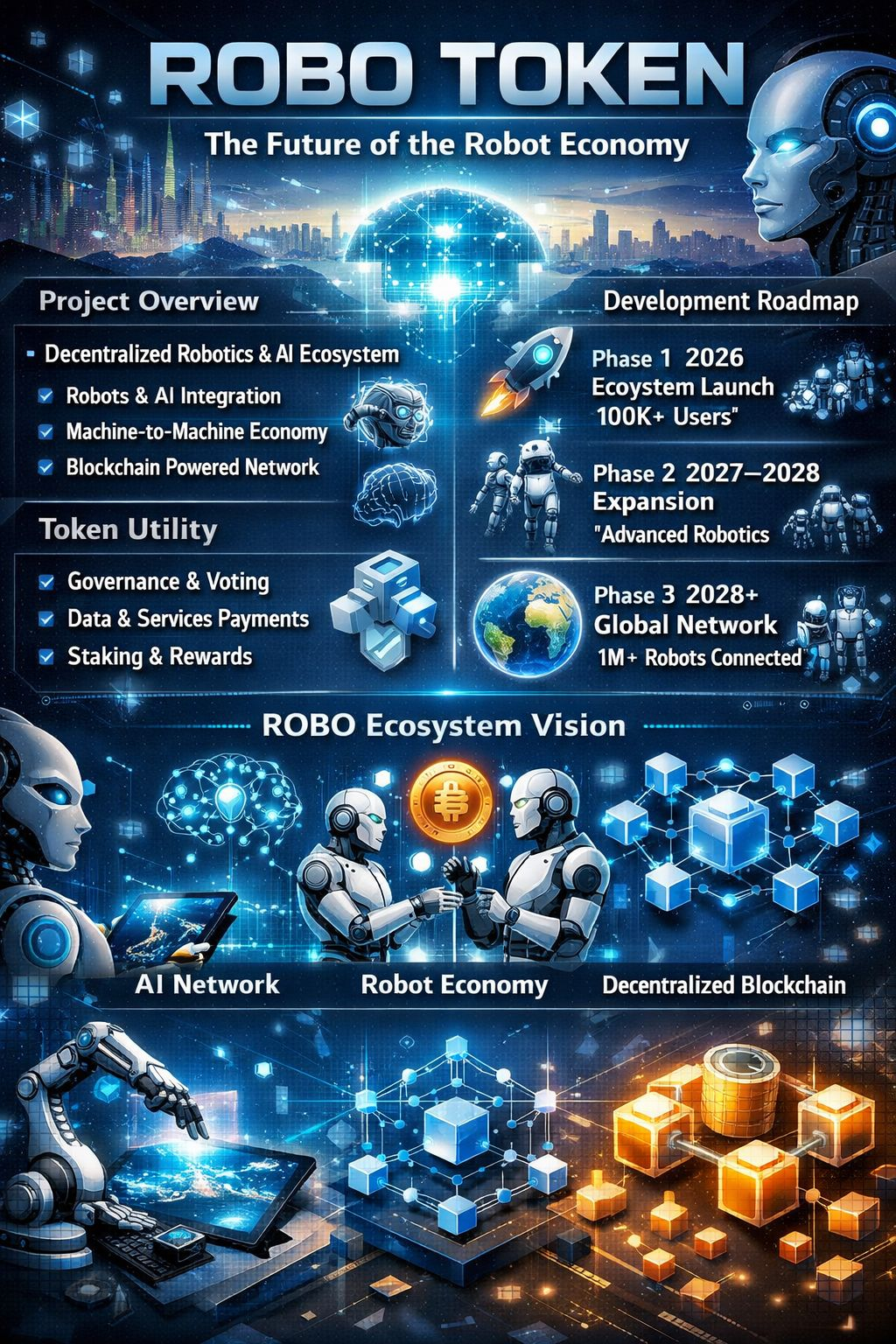 Unlike traditional cryptocurrencies focused only on finance or DeFi, $ROBO aims to combine:
