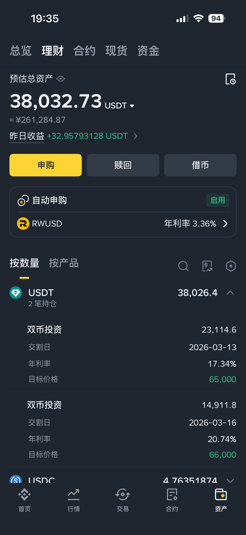 · Rozliczenie na koniec: zakładając, że cena wyzwolenia nie została osiągnięta, otrzymasz około 38.36 USDT odsetek (10,000 × 20% × 7/365).