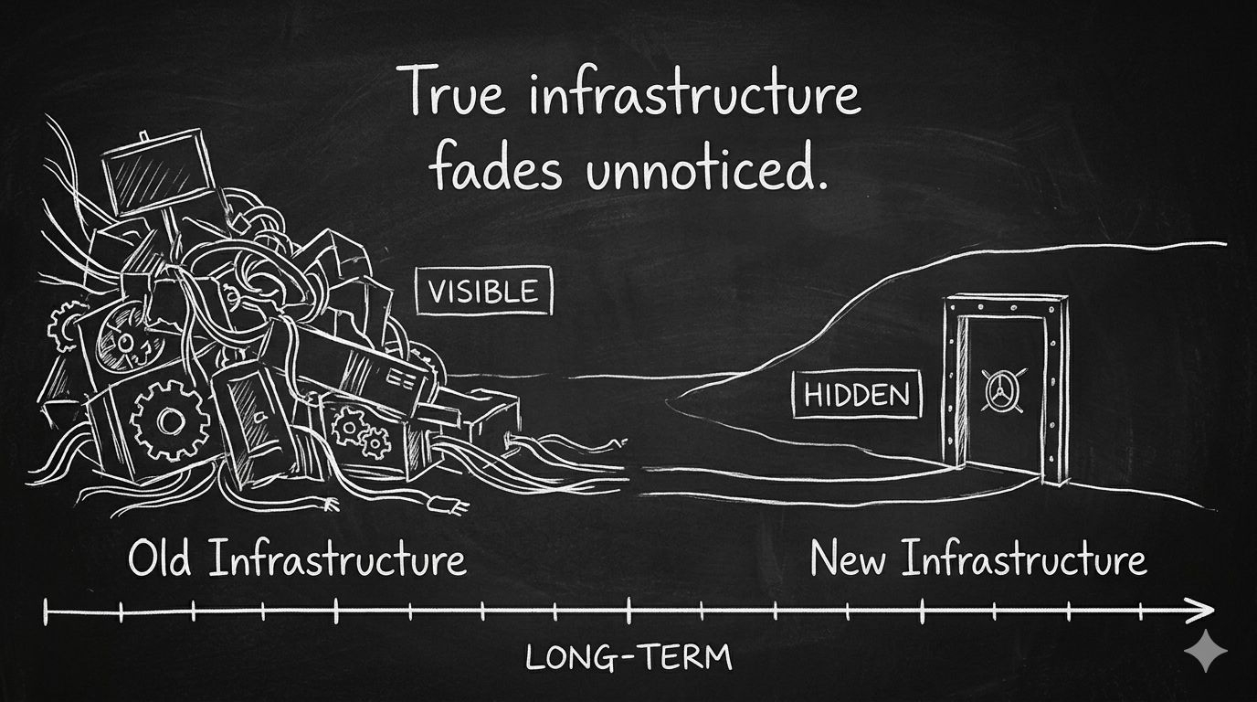 This idea feels slightly risky because it pokes at the foundation most crypto enthusiasts stand on. We believe true infrastructure must be fully on-chain, trustless at every layer, or it isn't real. But the comparison forced a different view. Real infrastructure, the kind that lasts, operates invisibly. It handles failures without community votes or token burns. Modern L1s, by demanding constant engagement—upgrades, migrations, narrative shifts—keep users glued to dashboards instead of letting systems fade into utility.
