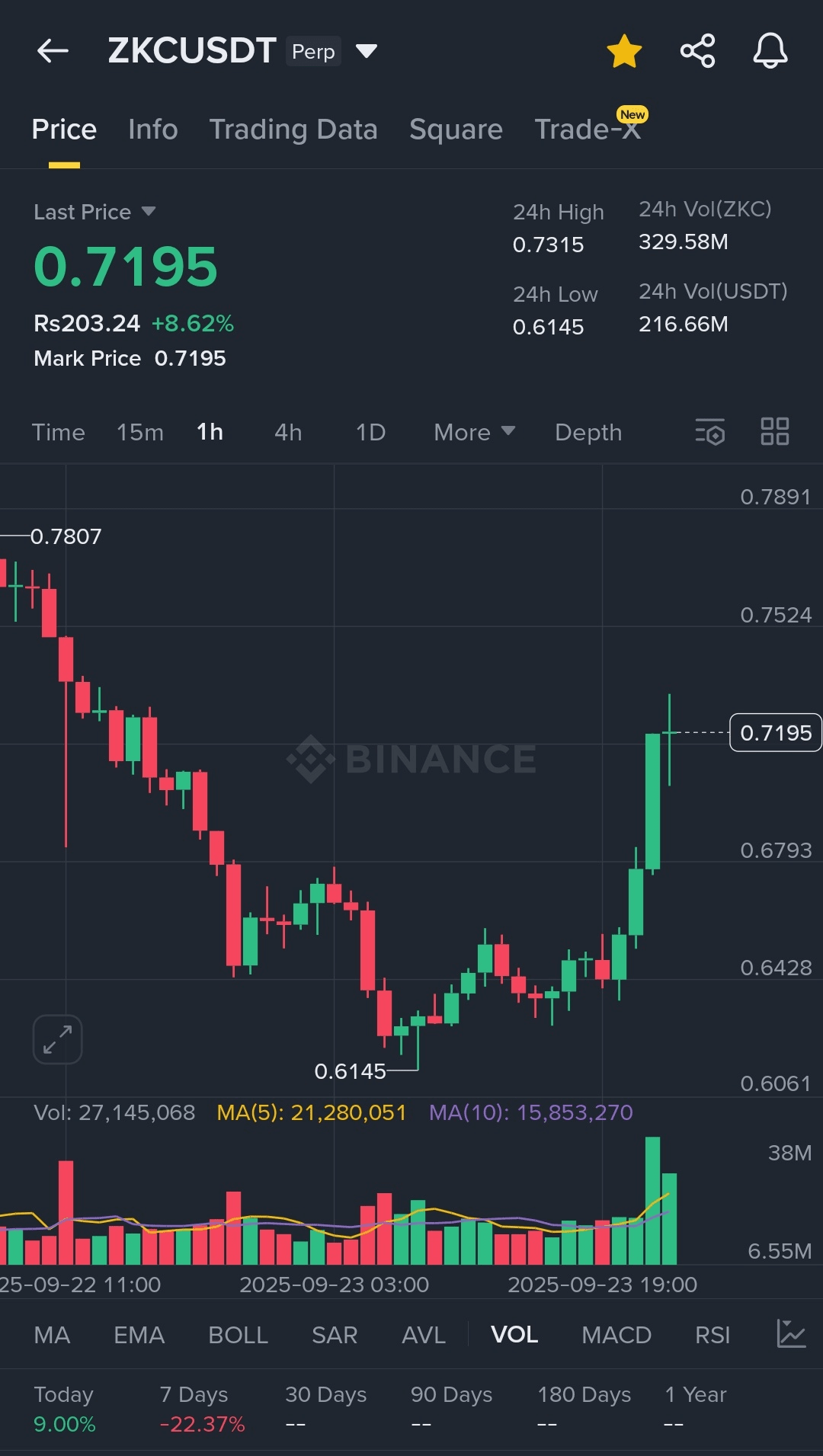 Wzrost z $0.615 do $0.7195 oznacza krytyczny ruch, podkreślając zarówno silne poziomy wsparcia, jak i bycze nastroje wśród traderów. Taka tendencja wzrostowa często sygnalizuje odnowione zainteresowanie zarówno ze strony krótkoterminowych traderów, jak i długoterminowych posiadaczy, pozycjonując ZKC jako token do obserwacji w rozwijającym się ekosystemie blockchain.