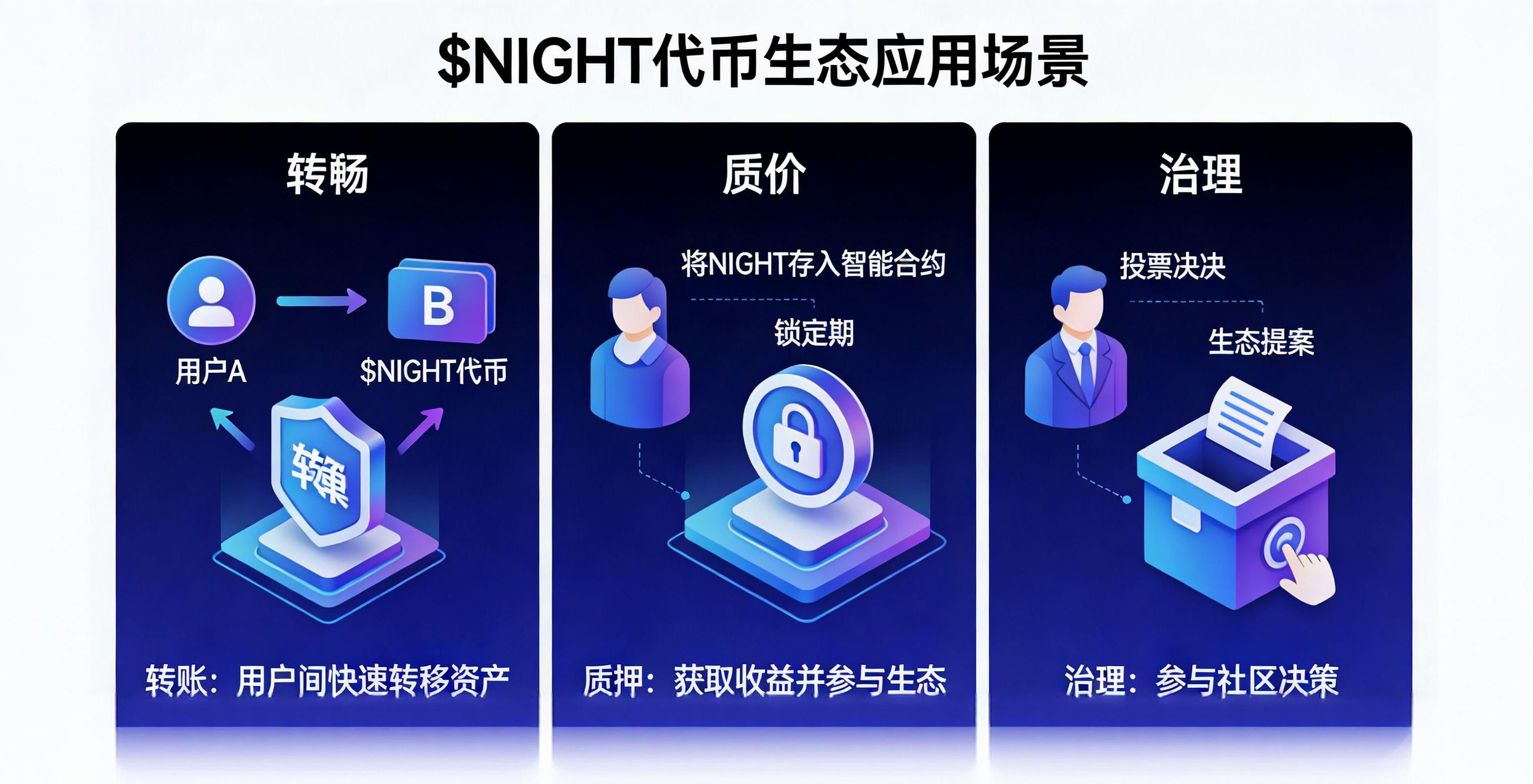 而NIGHT作为Midnight Network的核心代币,更是和我们的日常使用息息相关。它不只是单纯的投资标的,更是网络的实用通行证:持有NIGHT可参与网络治理,对生态发展提案投票,掌握项目发展话语权;能通过质押获取收益,轻松实现资产增值;还能兑换成DUST代币,用于支付隐私交易手续费,解锁全部隐私功能。这种双代币模型设计,让NIGHT的价值牢牢扎根于生态实用场景,而非空中楼阁,随着越来越多用户重视链上隐私,NIGHT的需求也会持续攀升。