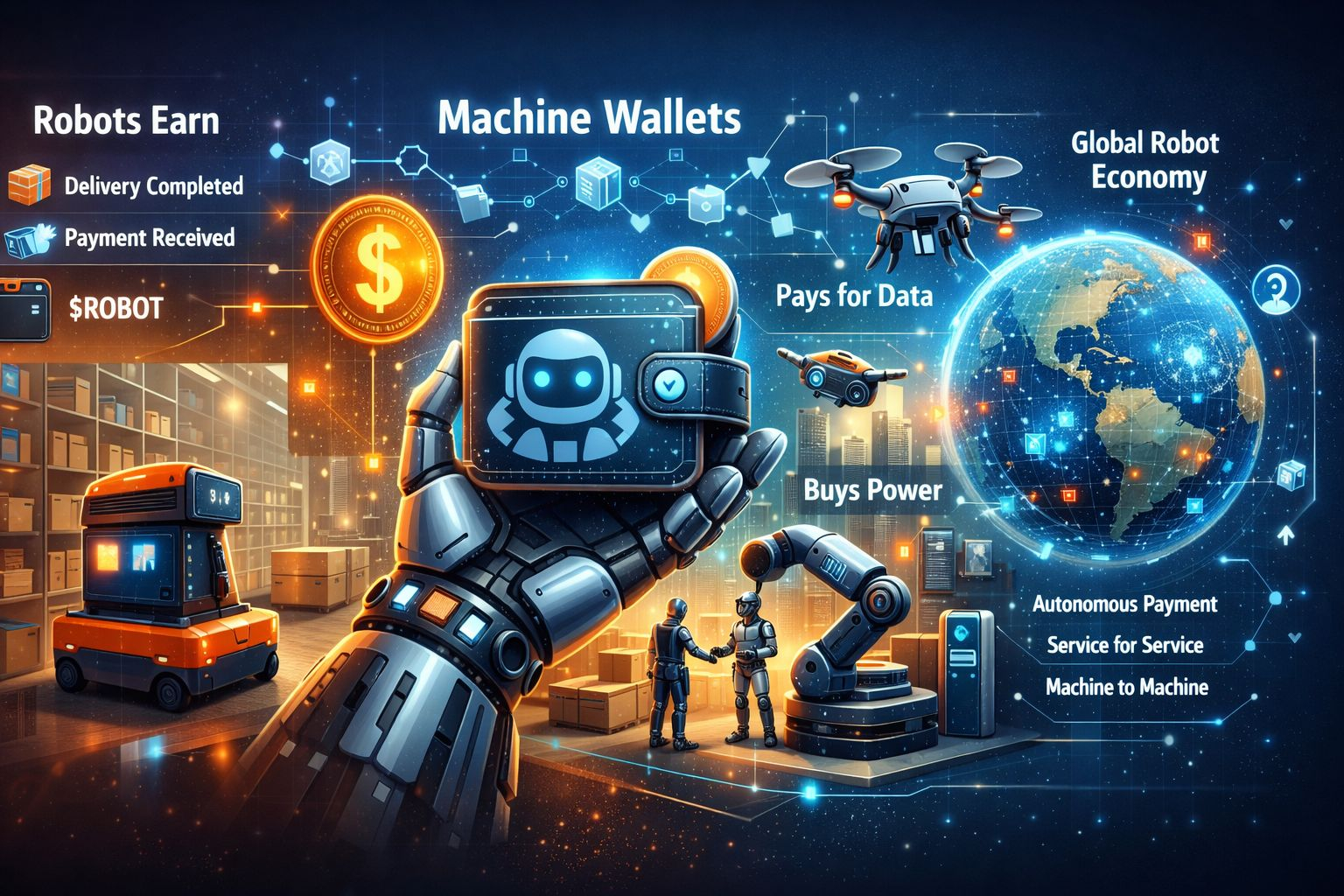 Imagine a delivery robot moving through a city. It already makes decisions constantly — choosing routes, avoiding obstacles, adjusting to traffic conditions. Now imagine that the robot operates within a network where completing a delivery automatically triggers a payment to its wallet. If it needs updated navigation data, it can purchase that information instantly. When it docks at a charging station, it pays for electricity automatically.