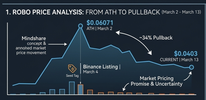 Talking about numbers, as per the data of March 13, the price is around $0.0403. Market cap is $90 million and FDV is $403 million. Out of a maximum supply of 10 billion, about 2.23 billion are circulating. On March 2, it hit an All Time High of $0.06071 and is now about 34 percent down from there. Binance listed it on March 4 with a Seed Tag, indicating that Binance itself considers it a high potential but early stage asset. The market is pricing in its promise but with uncertainty.