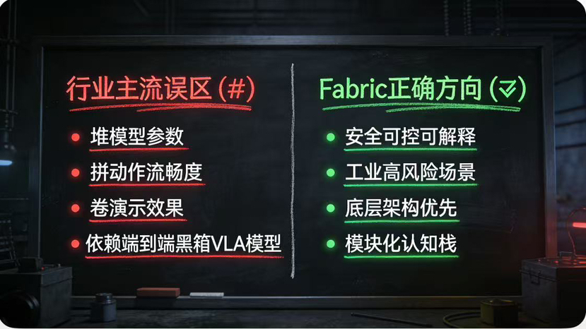 Fabric从设计之初,就清醒地避开了这条高风险路线,没有追求短期的表演性效果,而是选择了更稳健、更贴近工业需求的三层模块化认知架构。这三层彼此独立、接口清晰,既可以单独升级,也可以单独校验,更可以单独设置安全规则,真正实现了看得懂、想得明、动得安全。