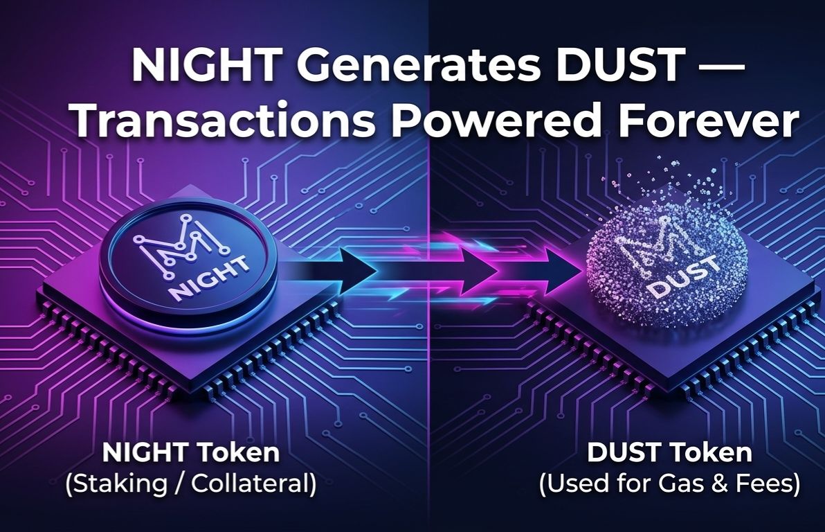 NIGHT has a total supply of 24 billion tokens. It is non expendable meaning you never spend NIGHT to execute transactions. Instead NIGHT continuously generates DUST over time. The more NIGHT you hold the more DUST you generate and the more transactions you can execute. This relationship between NIGHT and DUST creates predictable operating costs that are not directly tied to the market price of the token.
