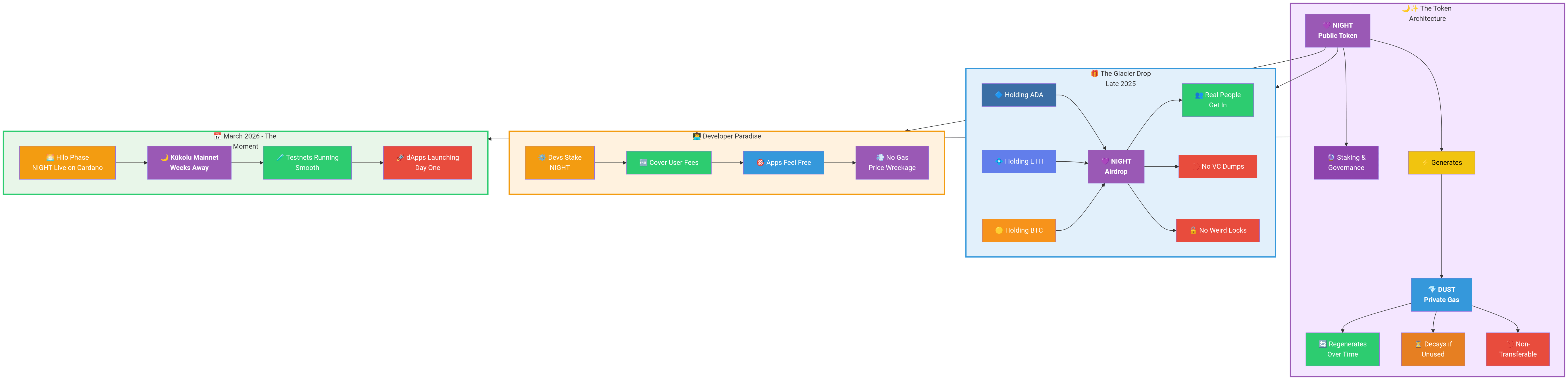 Right now, as I’m typing this in mid-March 2026, we’re in this Hilo phase where NIGHT is already live and trading on Cardano so people can actually get their hands on it while the team finishes locking everything down. The real mainnet – they call it Kūkolu – is literally weeks away. Testnets have been running smooth, the Midnight Academy is teaching regular Web2 devs how to jump in, and builders are already tagging their repos and getting ready to launch dApps day one. The Midnight Foundation is keeping it all steady instead of chasing Twitter hype.