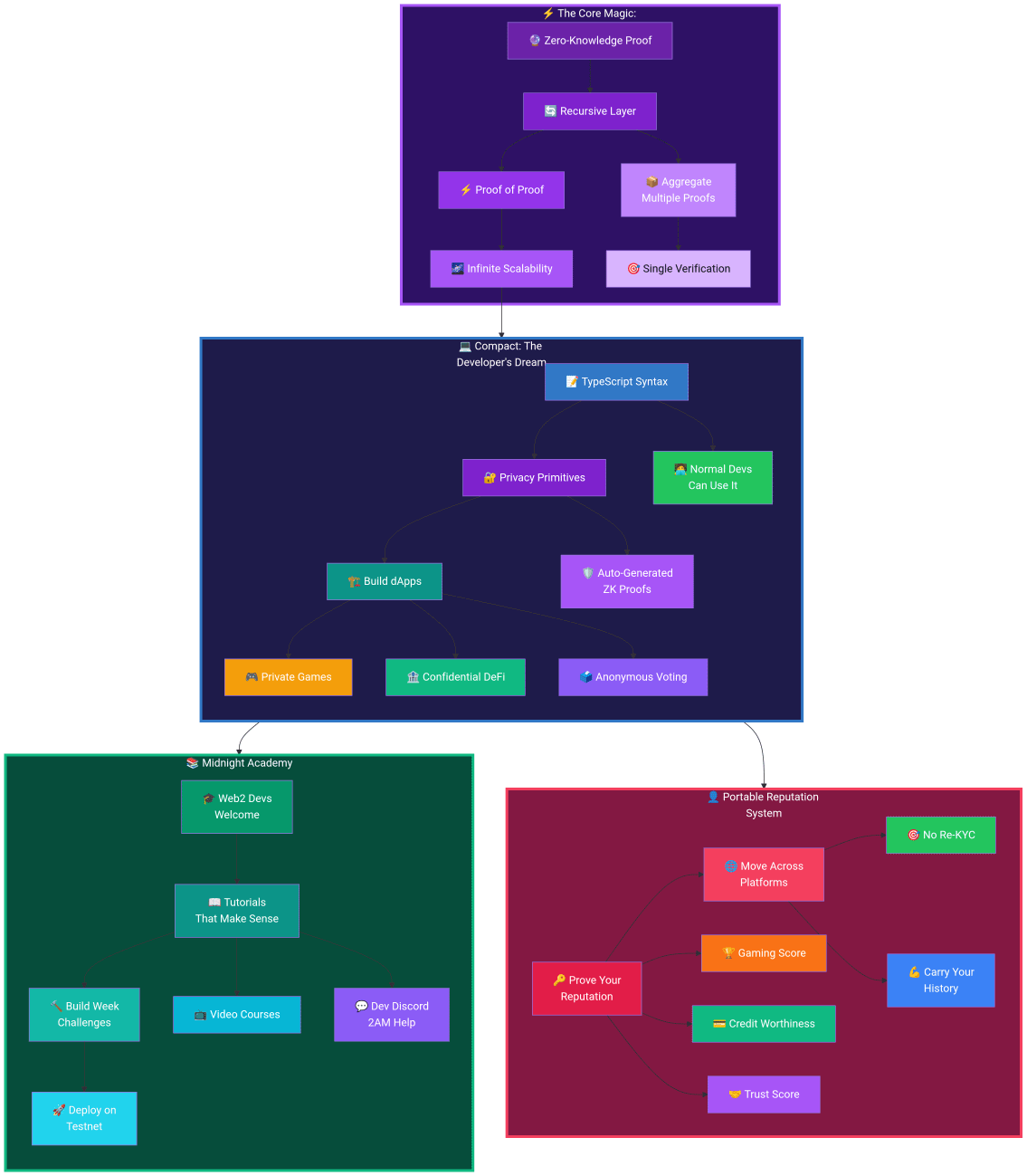 The tech is zk-SNARKs on steroids – recursive zero-knowledge proofs – but they made it so normal devs can actually use it. There’s this language called Compact that feels like TypeScript with privacy superpowers. I’m not a coder, but even I could follow along in their tutorials. You can build apps where your reputation travels with you across platforms, you can do real commerce without leaving a trail for advertisers or governments, and yeah, you can even do KYC stuff without handing over your soul. It’s selective disclosure that actually makes sense instead of the usual “trust us” nonsense.