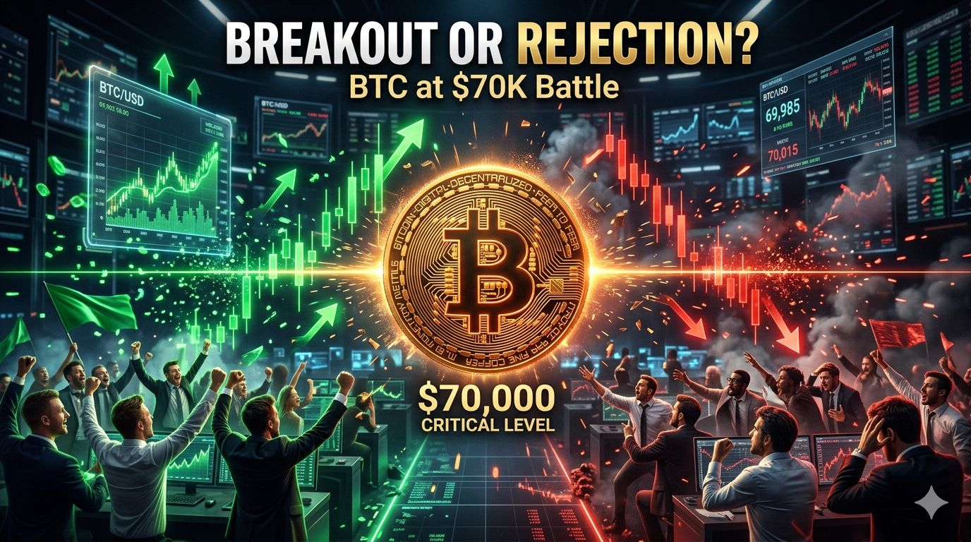 Bitcoin ($BTC ) is currently trading around the $70,000 resistance zone, a level that has become the main focus for retail traders. The market is showing clear signs of a battle between buyers and sellers, making this a निर्णायक moment for short-term price direction.