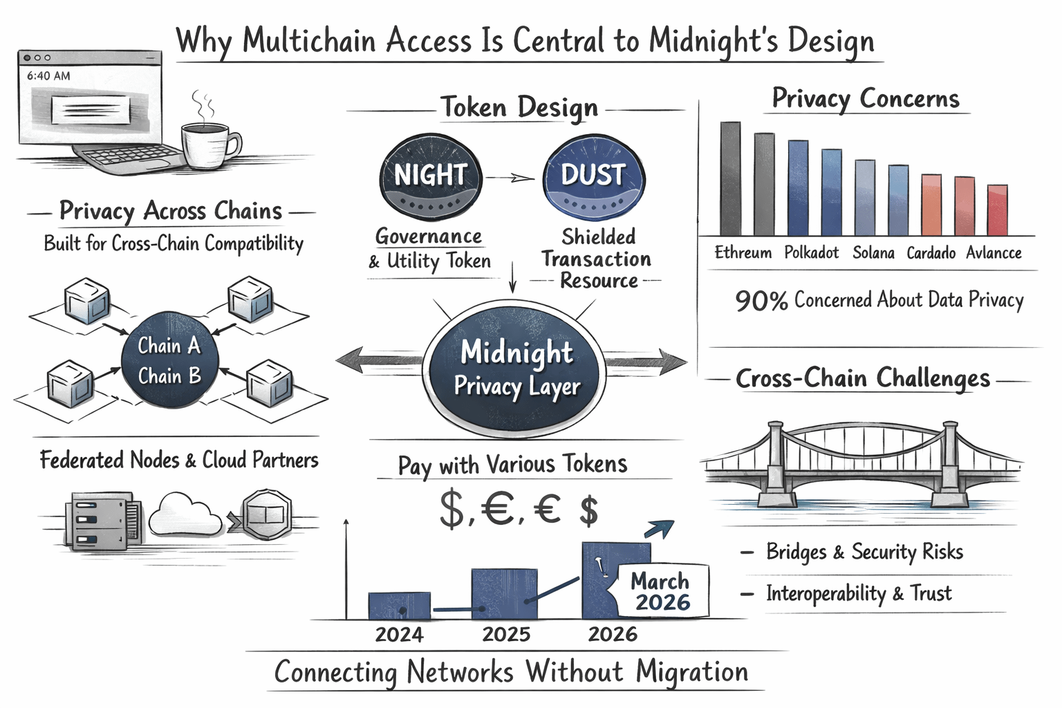 That is why multichain access feels central to Midnight’s design, not decorative. Without it, Midnight would be another chain asking the market for loyalty before offering utility. With it, the project has a clearer answer to a harder question: how do you add privacy to the networks people already use, in forms they can actually adopt? Right now, as launch approaches and the industry keeps circling back to privacy, compliance, and fragmented liquidity, that answer sounds timely to me precisely because it is so unromantic. It starts with the admission that the future was never going to fit on one chain.