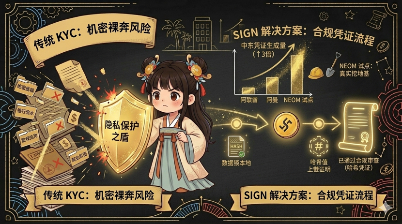 先说“爱”的部分。SIGN过去两个月在中东地区的凭证生成量涨了差不多三倍,主要来自阿联酋和阿曼的几个金融机构测试环境。这不是那种土狗项目刷出来的假数据,因为每个凭证背后对应的是真实的企业资质核验流程。更关键的是,沙特的国家级开发区NEOM,不是PPT开发区,是实打实在挖地基搞基建的那种,正在用SIGN做外资企业准入的试点。这些信息我在公开渠道核过实,可信度不低。