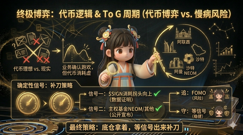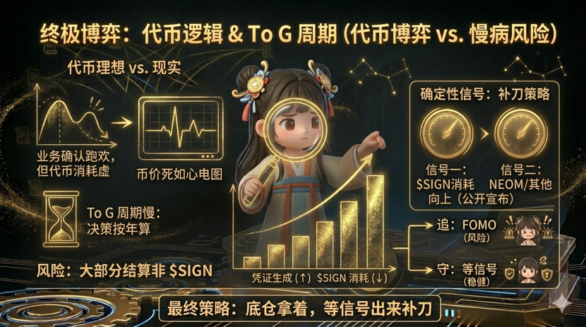 我自己怎么操作?我把仓位从 12% 加到了 28%,但这不是信仰,是算过账的。我赌的是未来 6 个月,至少有一个中东主权实体或持牌金融机构,把 SIGN 写进他们的数字基建采购合同里。如果这事没发生,我认亏走人。如果发生了,现在这个价格就是地板。