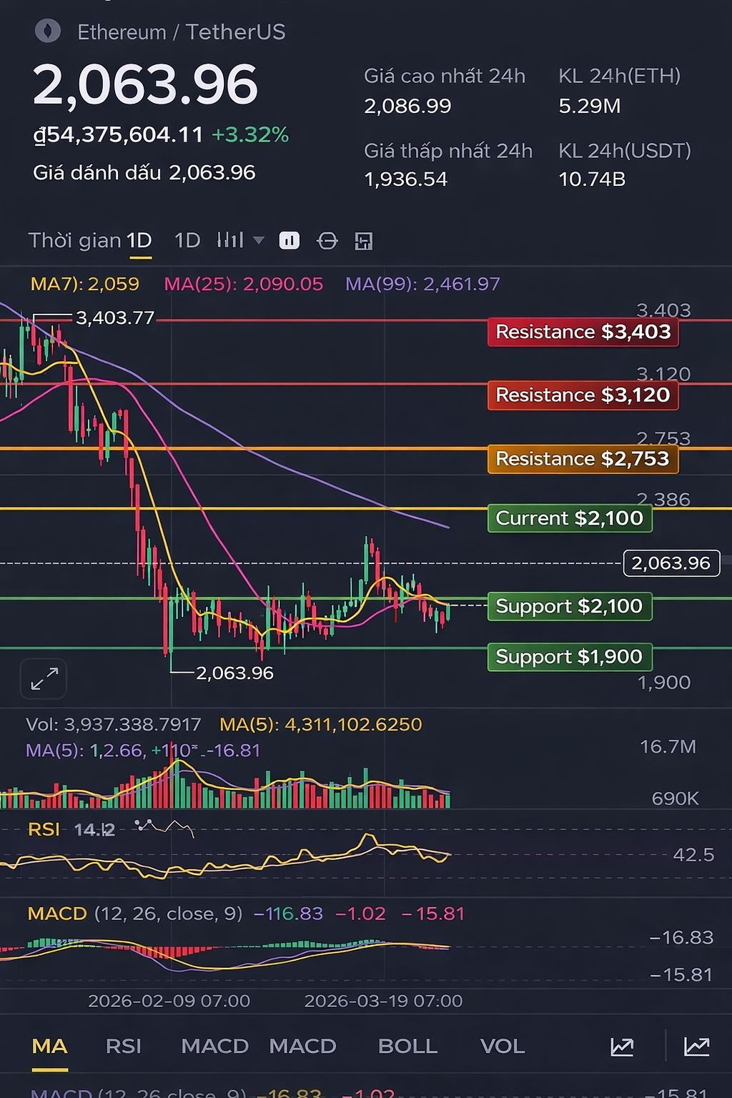ETH hiện tại đang dao động quanh vùng 2,0xx$ sau khi có nhịp hồi phục nhẹ 📈