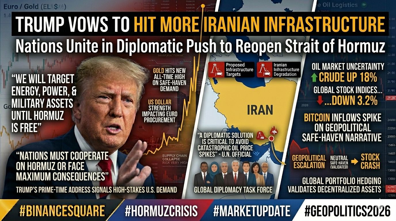 The geopolitical landscape has shifted into high gear. While a coalition of nations is desperately working through diplomatic channels to reopen the Strait of Hormuz, President Donald Trump has doubled down on a "maximum pressure" military strategy. In his latest statement, he vowed that the U.S. will continue to target Iranian infrastructure until maritime freedom is fully restored. 🏛️⚠️