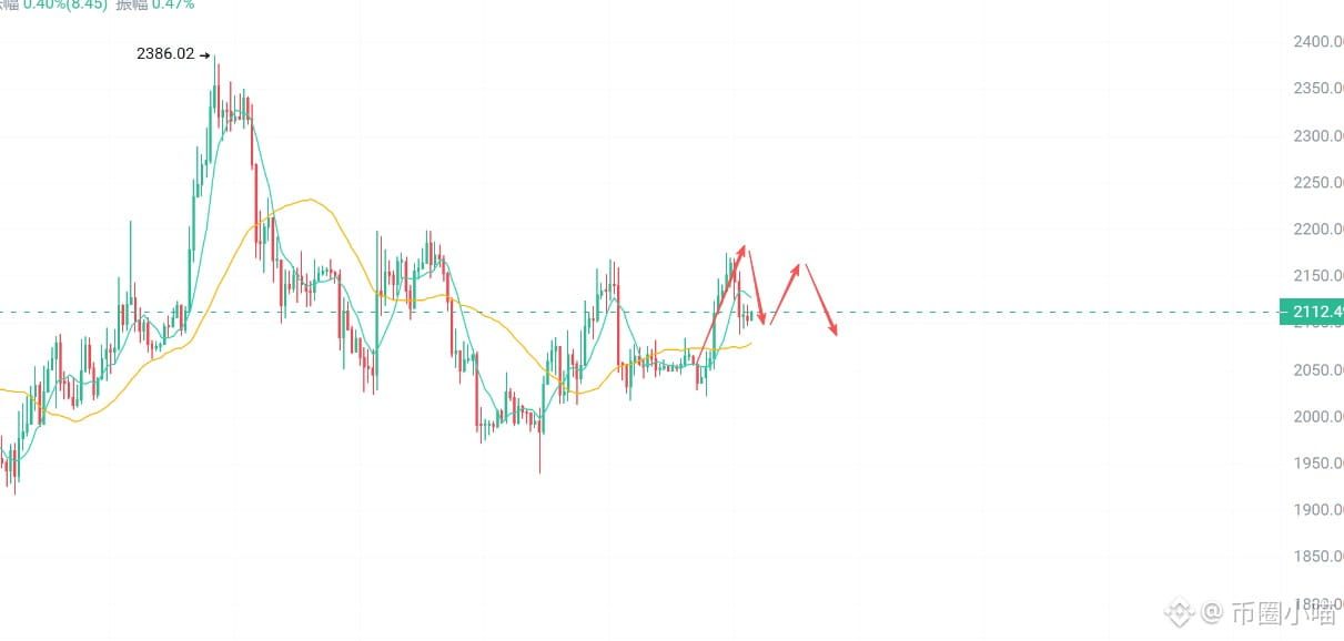 再看 $ETH,整体节奏跟随BTC,但相对更稳一点。短线重点还是2050-2100支撑区间,上方2150-2200是第一道压力,如果能站稳2200,上面还有机会去摸2260-2300。但大趋势上,依然是震荡行情,不是单边。