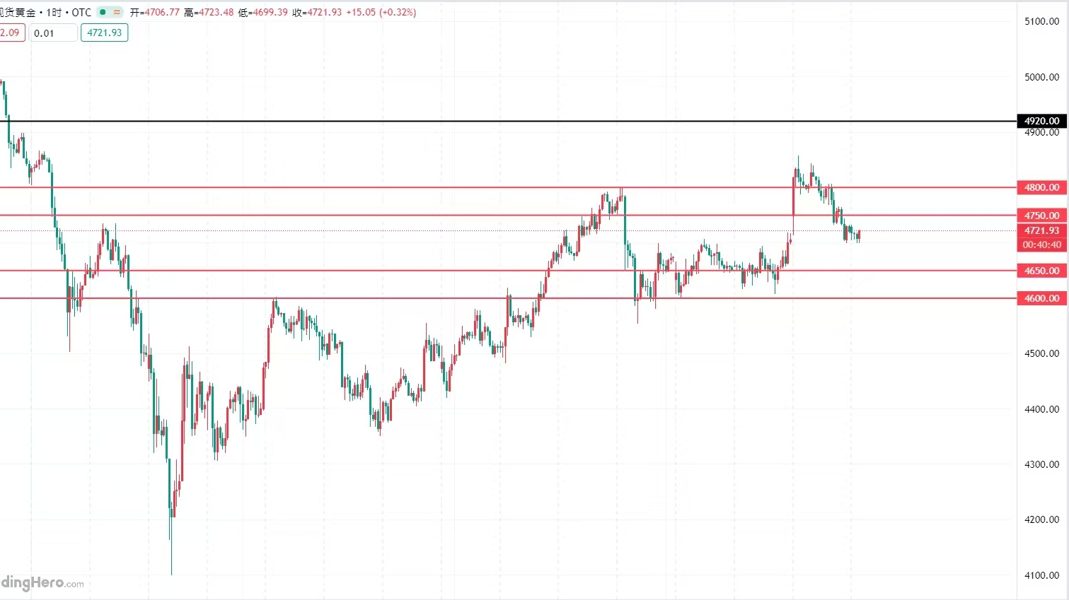 当前盘面来看,黄金日线级别整体偏强,价格稳稳站在均线上方,没有出现顶部背离信号,RSI指标也在正常区间,没有超买,下方4600附近支撑很强,整体还是震荡往上走。4小时级别同样偏强,价格依托短期均线慢慢往上抬,低点不断抬高。这次冲高回落只是短期调整,并没有破坏日线和4小时的多头结构,后面只要量能跟上,有望突破前期压力,继续反弹,技术面整体还是多头占优。1小时级别暂时偏弱,价格在短期均线下方,MACD绿柱小幅放量,RSI低于50,空头短期占优,但只是短线回调,整体上行结构没坏,属于正常休整。