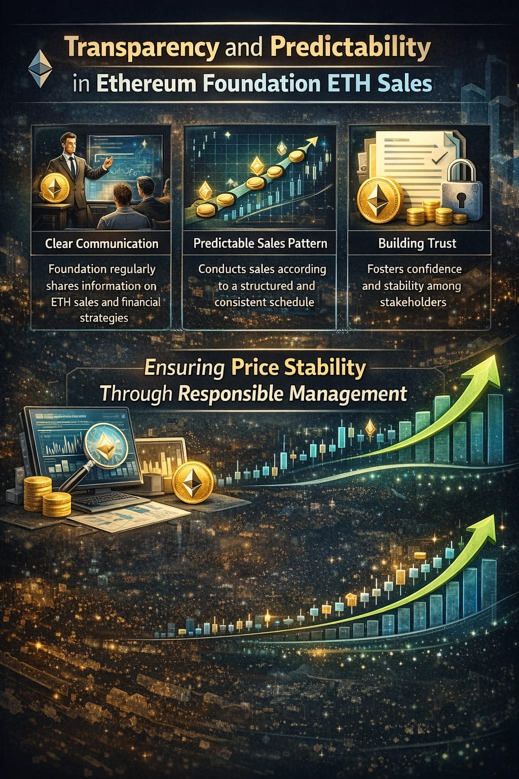 Przejrzystość jest definiującą cechą sprzedaży ETH Fundacji Ethereum na operacje. Fundacja utrzymuje jasną komunikację w zakresie swoich strategii finansowych, co pomaga zmniejszyć niepewność na rynku.