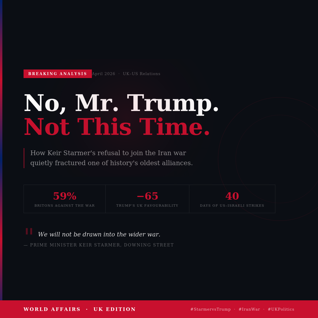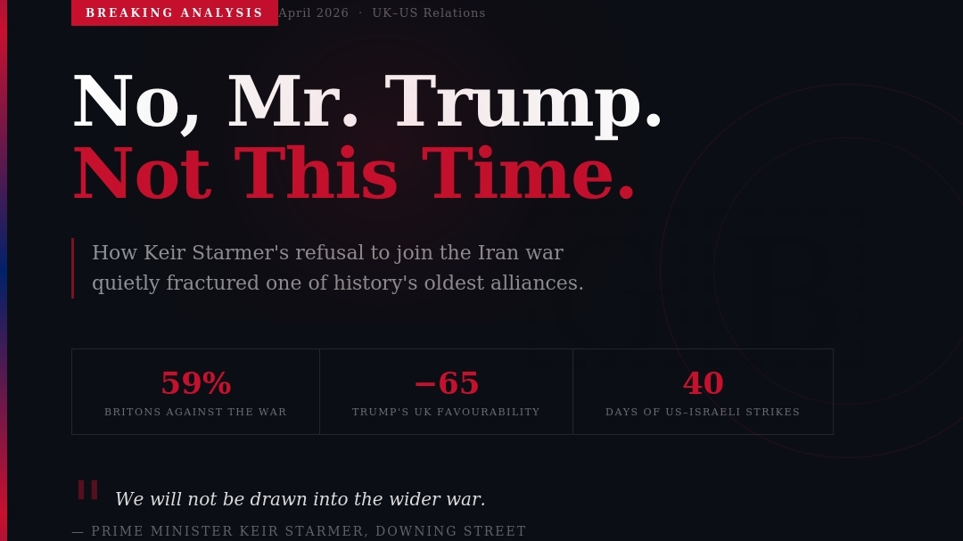 When Trump ramped up his rhetoric threatening to destroy Iran and pushed UK allies to fall in line, Starmer held his ground. He stood at a Downing Street press conference and said flatly: "We will not be drawn into the wider war." No theatrics, no lengthy press release — just a firm line drawn in public.