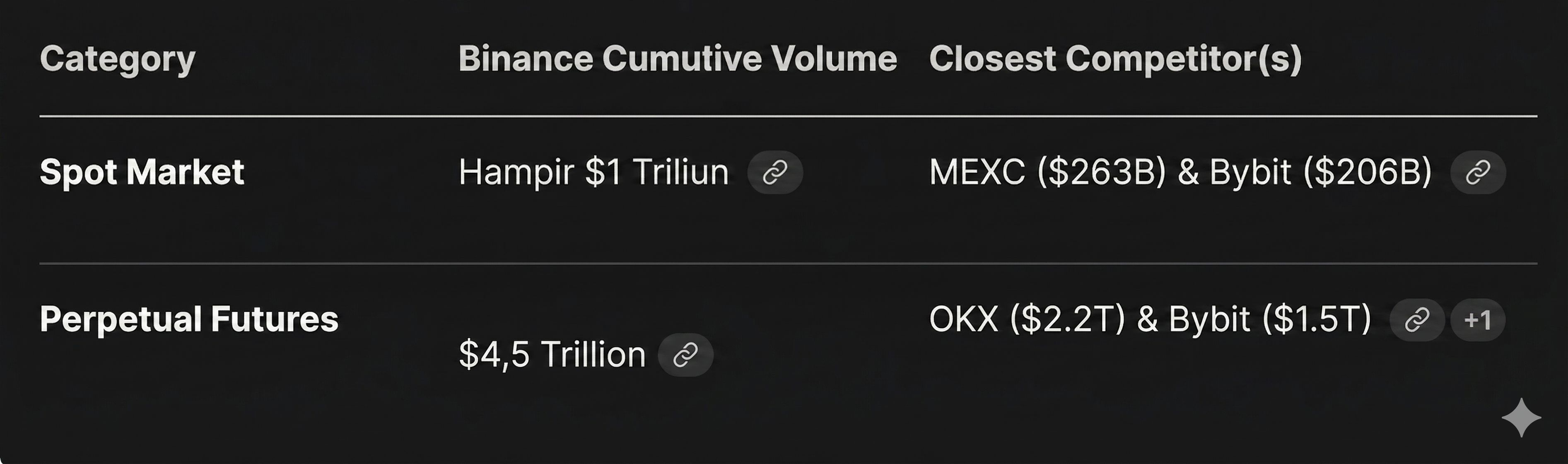 W tym krajobrazie Binance prowadzi z uderzającymi liczbami:
