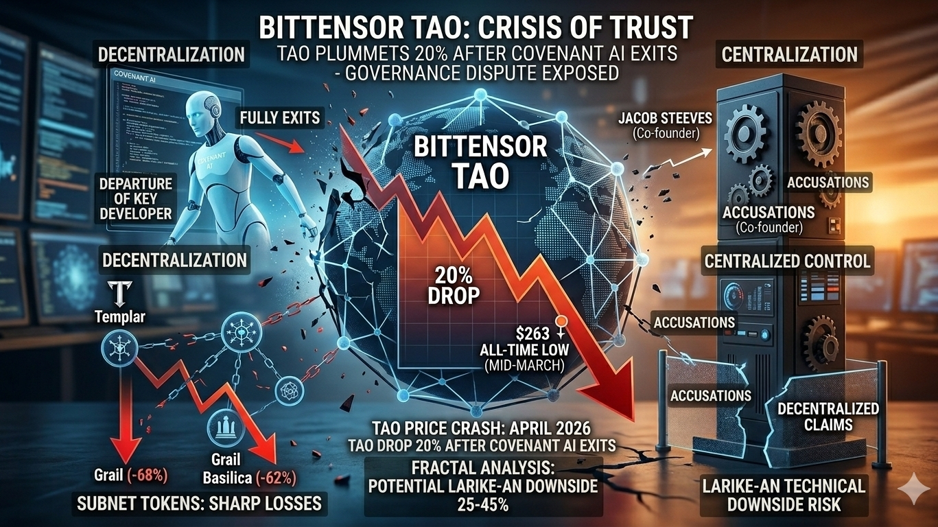 Jatuhnya Bittensor (TAO) sebesar 20% akibat mundurnya Covenant AI adalah guncangan besar bagi narasi "AI Terdesentralisasi" yang selama ini diagungkan. Peristiwa ini bukan sekadar koreksi harga biasa, melainkan krisis kepercayaan pada fundamental proyek.