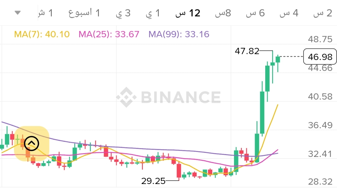 نحن نرى تشكلاً كلاسيكياً لقيعان أعلى متتالية، مما يؤكد على أن الثيران قد سيطروا على المشهد تماماً. المتوسطات المتحركة (MA 7, MA 25, MA 99) بدأت تترتب بشكل صاعد، مما يعزز هذا الاتجاه.
