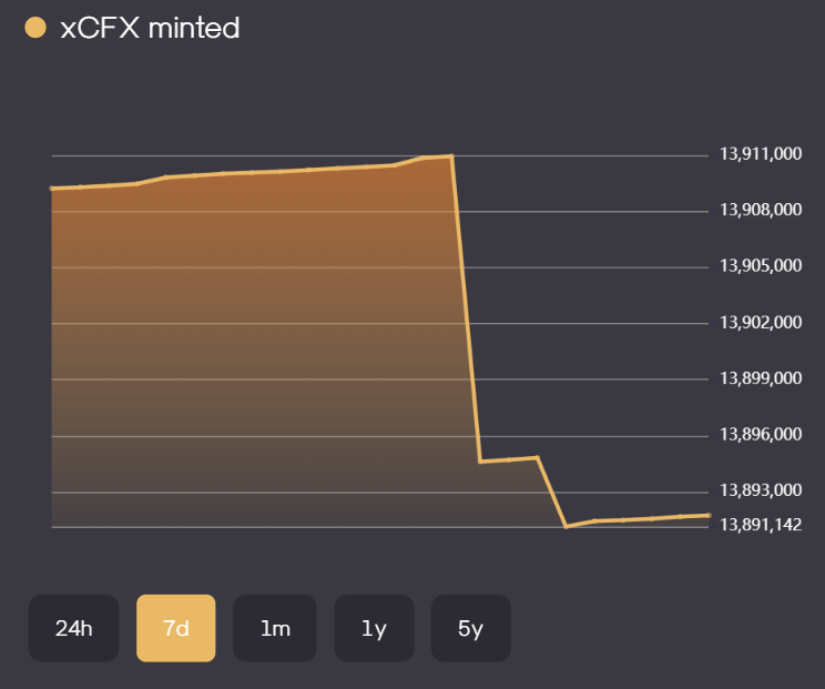 Ilość emisji xCFX na płynnej platformie stawki Nucleon na Conflux eSpace spadła.