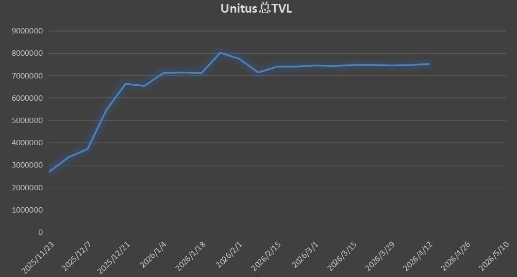 Całkowity wolumen pożyczek na zdecentralizowanej platformie pożyczkowej Unitus na Conflux eSpace wynosi 7,51 miliona dolarów, co stanowi niewielki wzrost.