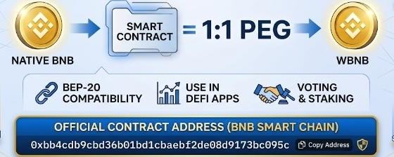 Since the native BNB token does not follow the BEP-20 standard, it cannot be used directly in many decentralized applications or liquidity pools. Wrapped BNB (WBNB) solves this by "wrapping" BNB in a smart contract at a strict 1:1 ratio. This allows users to trade, stake, and provide liquidity across platforms like PancakeSwap while maintaining the exact value of their BNB.