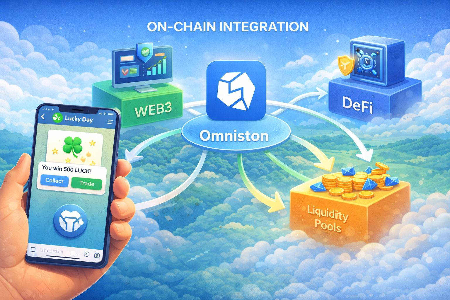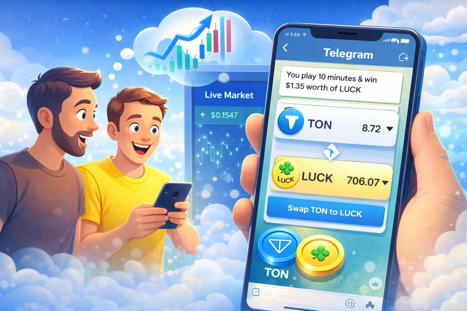 Niewidoczne wykonanie: Dzięki zaawansowanym narzędziom trasowania, takim jak Omniston, gracze mogą płynnie przechodzić z TON do tokena LUCK bezpośrednio w interfejsie Telegramu. Wymiany, trasowanie i interakcje z pulą wykonują się całkowicie w tle.