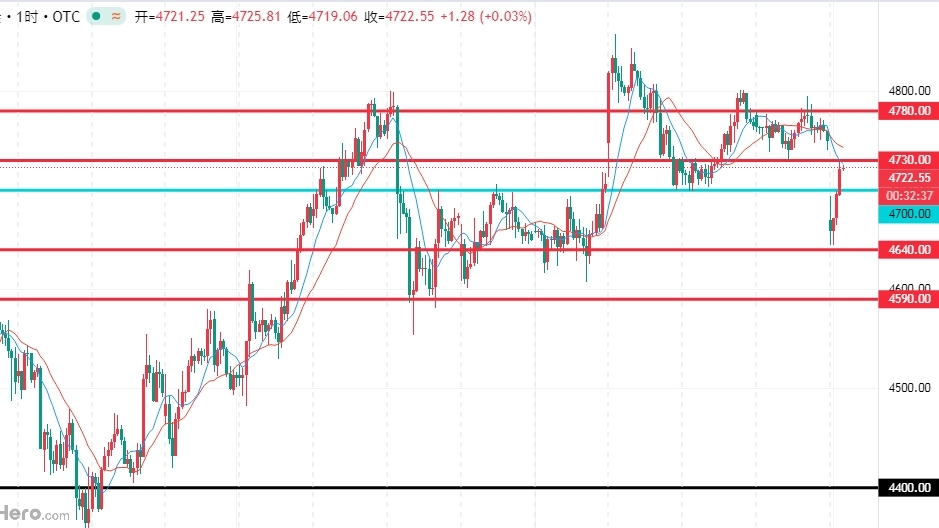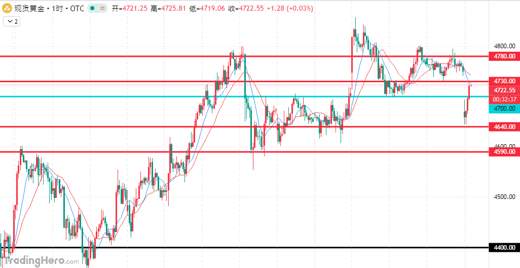 今天黄金开盘直接跳空低开,比上周五收盘价低很多,开盘后一路往下,最低跌到4644附近,日内跌幅很大,盘面明显走弱,空头情绪一下子全出来了。这次大跌不是一个原因造成的,而是地缘冲突升级、降息预期降温、技术面跌破关键位几个利空凑到一起,短期怎么走,关键看支撑能不能守住。