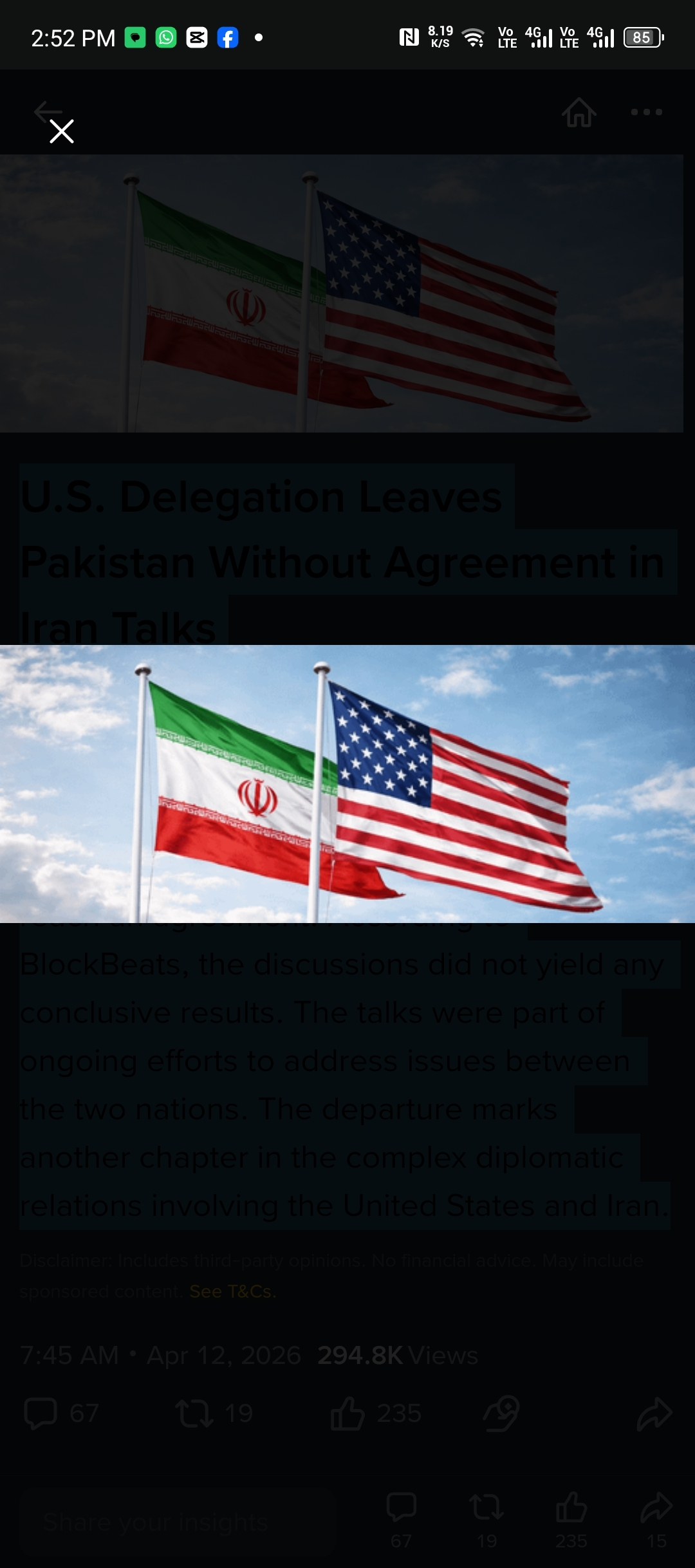 On April 12, a U.S. delegation departed Pakistan after negotiations with Iran failed to reach an agreement. According to BlockBeats, the discussions did not yield any conclusive results. The talks were part of ongoing efforts to address issues between the two nations. The departure marks another chapter in the complex diplomatic relations involving the United States and Iran.$TRUMP $USDC