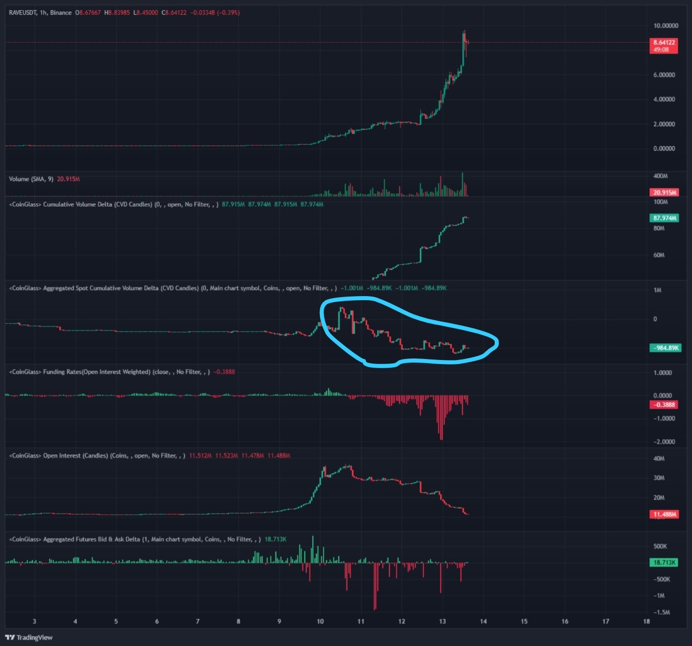 There is currently no buying happening in the Spot market for $RAVE The price is being pumped strictly through Futures Long positions. If you look at the data, there is regular selling occurring in Spot.