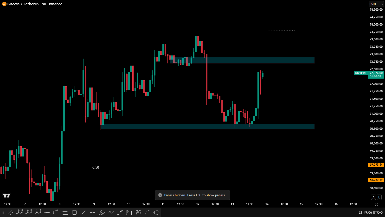 The market participants are closely watching upcoming US economic data, especially the PPI release. This data could act as a short term catalyst. If inflation data comes in softer than expected, Bitcoin could gain momentum and push higher. On the other hand, stronger than expected data may create temporary volatility. Key levels to watch remain clear. Support sits around $70,000 to $71,000, while resistance is seen near $73,500 to $74,000. A clean break above resistance could open the door for further upside in the near term.