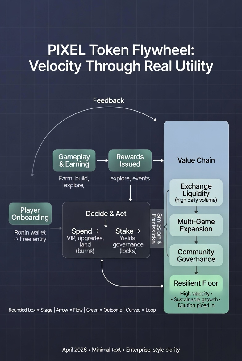I've been diving into PIXEL lately not chasing hype, just watching how the token actually behaves day to day and one quiet realization keeps hitting me harder than any headline. The dilution everyone keeps worrying about? It already feels priced in. What the charts and on-chain flows are really showing is a utility asset that's found its own stubborn floor through real in-game consumption, even as the broader play to earn narrative has cooled off.