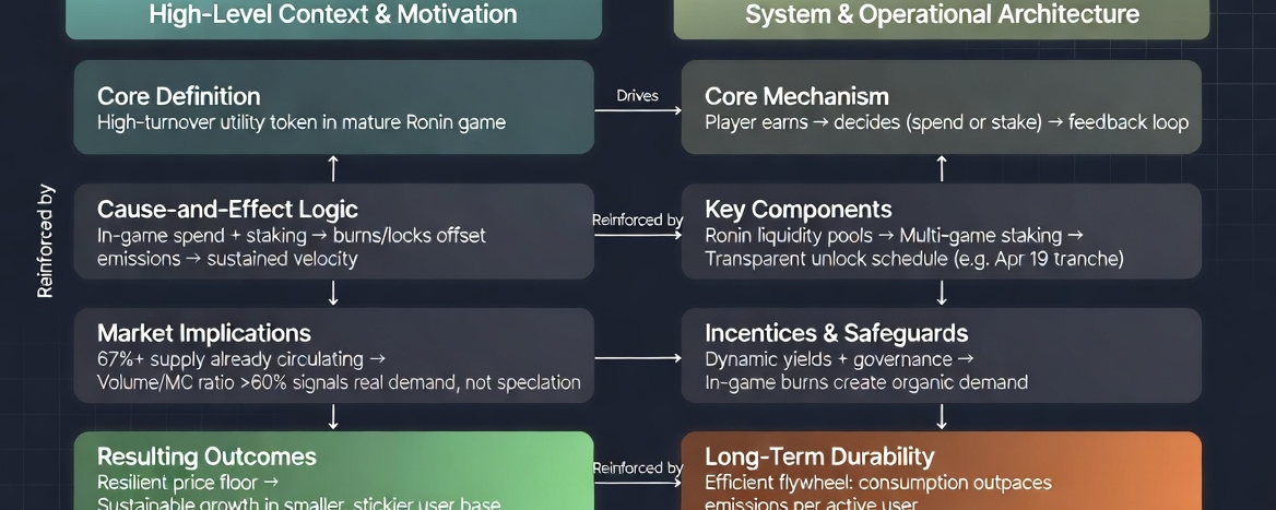 Let me walk you through what I've noticed. Right now the token sits around $0.0077, with a market cap of roughly $26 million on a circulating supply of about 3.38 billion out of the hard-capped 5 billion. That means two-thirds of the total supply is already out there, moving freely. Yet the 24-hour volume is consistently punching above $17 million often north of 65% of the entire market cap. That's not the kind of sleepy turnover you see in tokens waiting for the next retail wave. It feels like money actually cycling through the ecosystem: players spending on VIP passes, guild upgrades, land mechanics, and the staking pools that have rolled out across multiple games on Ronin. The velocity is high because people are using it, not just holding or flipping it.
