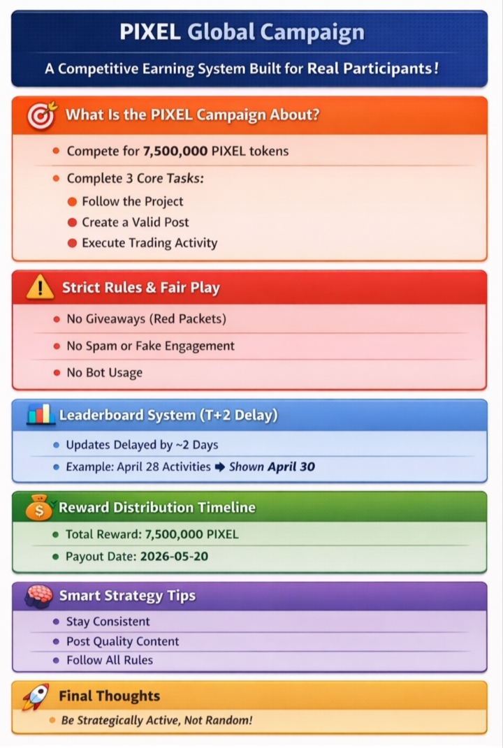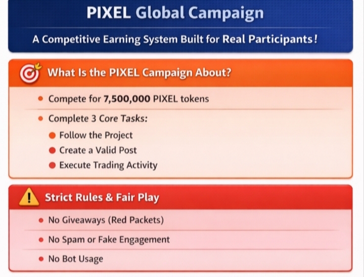 The PIXEL global campaign is not just another earning event. It is a structured competitive system designed to reward real engagement and eliminate low-quality participation.