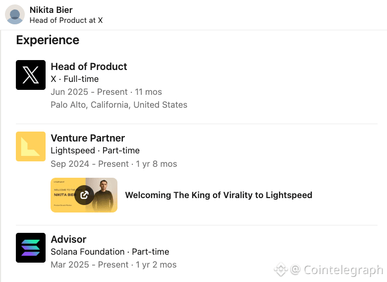 Nikita Bier joined X as head of product in June 2025, months after taking on an advisory role at the Solana Foundation in March.