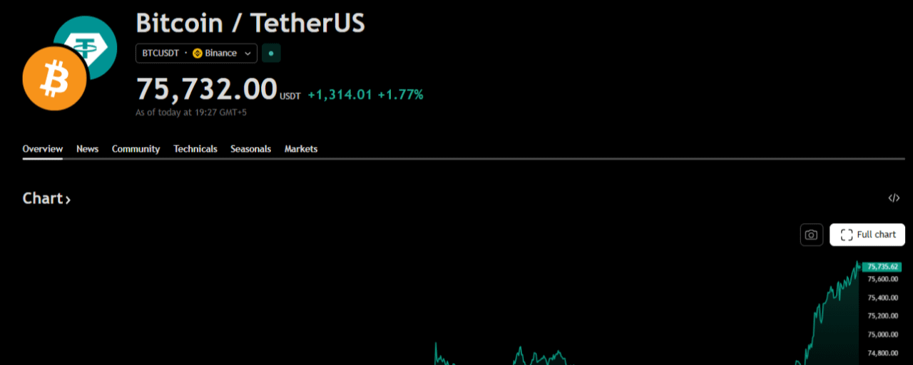 Bitcoin zbliża się do 75 000 dolarów, ceny, której wielokrotnie nie udało mu się przekroczyć od początku lutego, stawiając szerszy rynek kryptowalut na obserwacji wyłamania po ponad dwóch miesiącach handlu w wąskim zakresie.