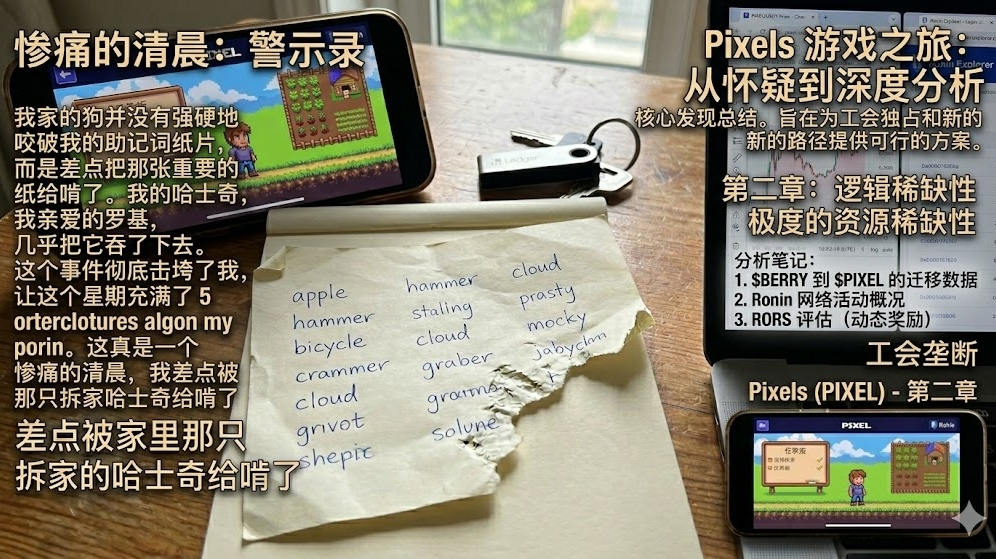 你看,这就像我那张被狗咬了一半的助记词。在这个圈子里,没有任何东西是完美的,也没有任何系统是绝对安全的。Pixels也有它自己的问题,比如对新手极度不友好,游戏玩法单调等等。。