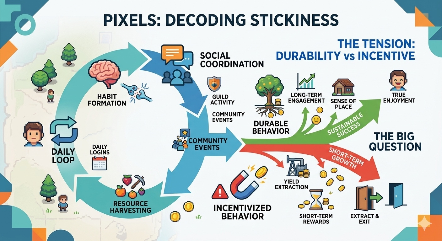 There’s something subtle happening inside Pixels — not just gameplay, but habit formation. Daily loops, resource cycles, social coordination. The system nudges users to return, to optimize, to participate even when there’s no immediate “fun” in the traditional sense.