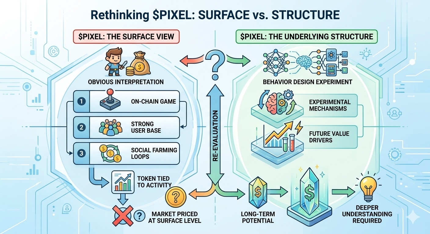 Most people see Pixels and immediately reduce it to a simple narrative: on-chain game, strong user base, social farming loops, token tied to activity. It’s easy to grasp. Easy to explain. Easy to trade.