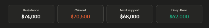 Round numbers matter more than most traders admit. The $70,000 level has become a psychological anchor, while analysts are closely eyeing the zones below.