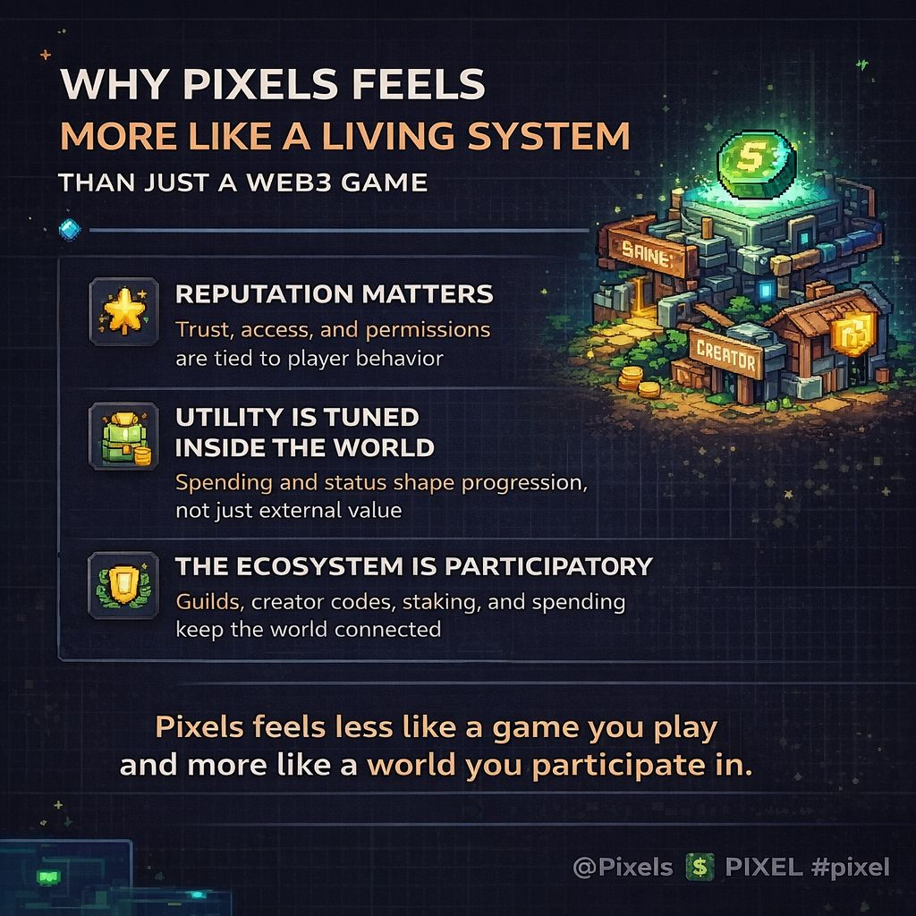 I used to think Pixels was easy to explain. A farming game on Ronin. A Web3 game with a token. A colorful world with quests, resources, and progression loops. That description is not wrong, but the more I looked at it, the more incomplete it felt.