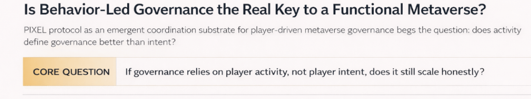 PIXEL could face the same risk. If governance weight is tied too closely to measurable activity, you might end up optimizing for the wrong kind of engagement,,grind over meaning, volume over impact.