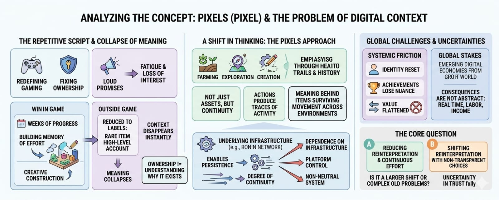 Whether that balance can hold is an open question. It depends on forces both internal and external, on decisions that have yet to be made, on behaviors that have yet to emerge. What can be said, with some confidence, is that Pixels has moved beyond the phase where novelty alone sustains it. It is now operating in a more demanding context, one where continuity matters more than attention, where the ability to endure is tested not by spikes of interest but by the slow passage of time.